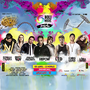 As atrações da cena nacional e internacional garantem o melhor da música eletrônica no Holi Music Park. São eles: DJ Chris Leão, Repow, Led Live, Pretty Boy, Mário Fischetti, Renan Cabalera e Lôra. Não existe obrigatoriedade no dress code, mas aconselhamos os baladeiros a usar camisetas brancas para dar mais vida as cores.