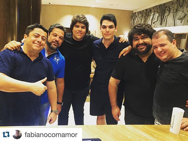 O zumzumzum é que já foi contratada a dupla César Menotti & Fabiano. Na foto, Wagner posa com os empresários Fabiano Oliveira, Fabiano Menoti e Yuri Rocha.