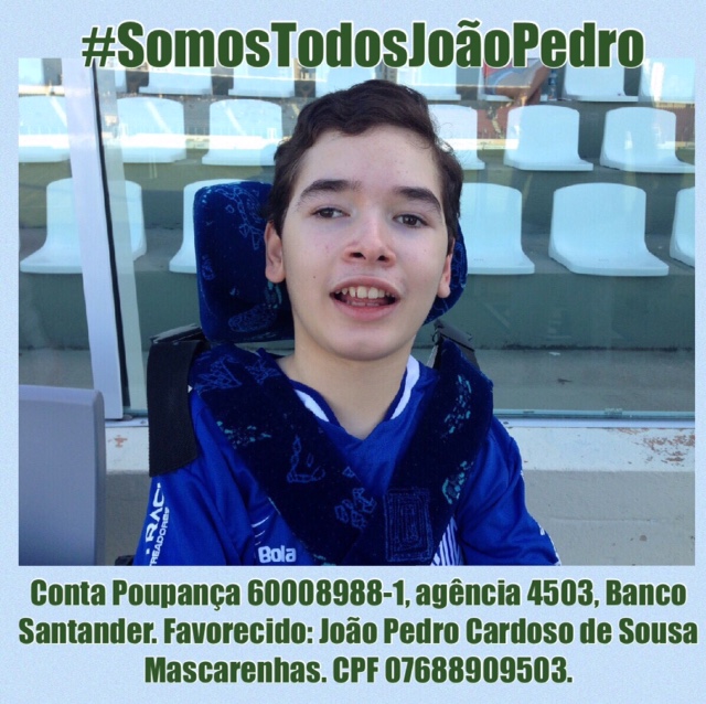 Conheço João Pedro bem antes da doença que o deixou na cadeira de rodas. Tem pais íntegros, dedicados, carinhosos e que nunca poupam esforços para ver sua cura e qualidade de vida. Reproduzo o texto abaixo que está nas redes sociais mobilizando muita gente para colaborar. Ele está quase ficando um adolescente e a fé é grande para os familiares que têm a esperança de dias melhores...