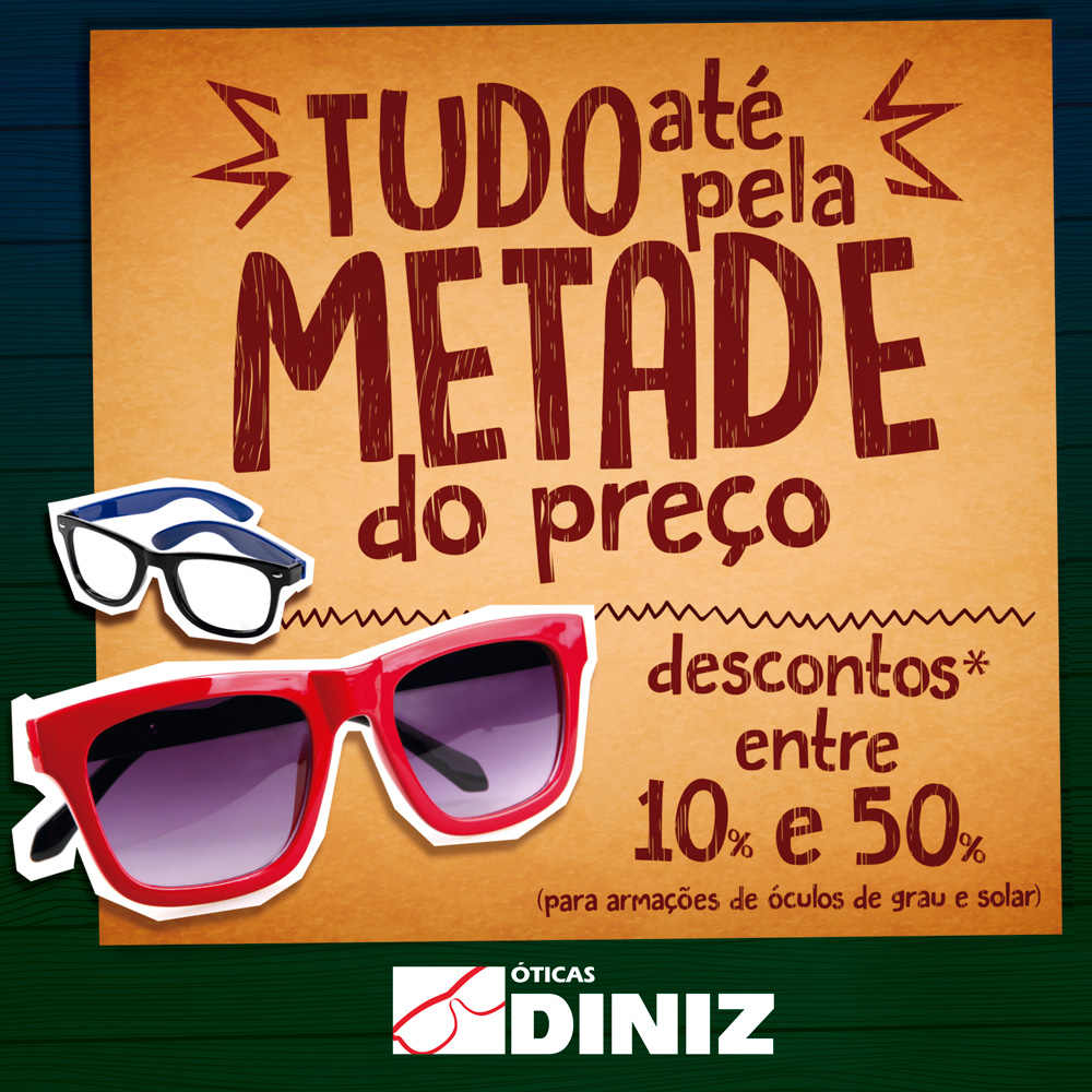 As Óticas Diniz resolveu botar todo mundo para renovar o estoque dos óculos de grau e solar.