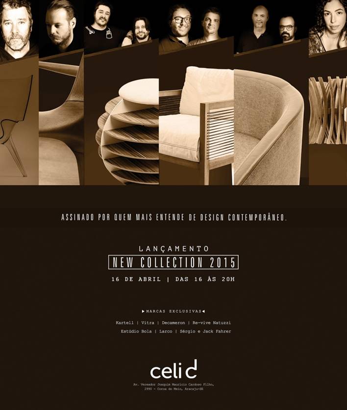 Na quinta, 16, tem lançamento de coleção Celi D. Os ambientes pensados na contemporaneidade com grandes nomes do design nacional e de vanguarda mundial onde se destaca a madeira, do couro, latão e materiais tecnológicos. O show room, dessa vez, traz o clássico de maneira isolada, mas não menos importante ao contexto dos produtos.
