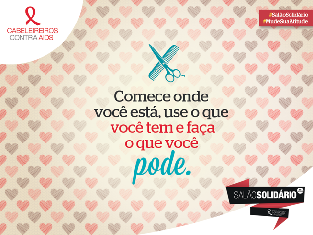 Explico melhor: no dia 1ºde dezembro, Dia Internacional da Luta contra AIDS, será realizado o Salão Solidário, onde salões parceiros de todo o Brasil se unirão em prol de uma causa nobre. Os principais cabeleireiros doarão seu tempo e talento durante este dia para realizar cortes a preços acessíveis. Toda a renda arrecadada será revertida para a Sociedade Viva Cazuza, que cuida de crianças portadoras do vírus HIV/Aids.