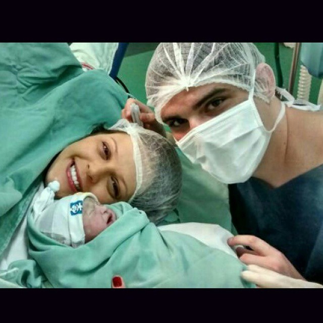 Com a foto postada no profile do Facebook, o casal anunciou que a esperada filhota tinha acabado de nascer na Maternidade Santa Helena. Ao trio, nossos votos de felicidades!