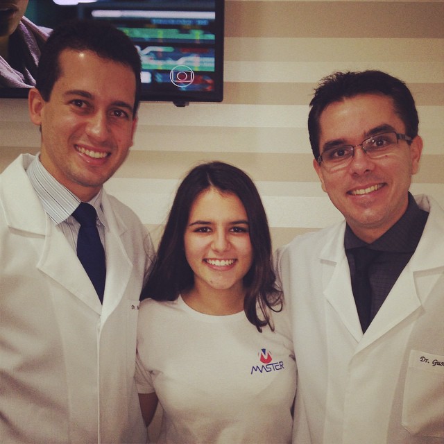 Um dos vestidos da bonita e discreta debutante (tal qual a mama) tem assinatura de Junior Santaella. Na foto recente e sem aparelho ortodôntico, Ana Celi com seus tops ortodontistas Henrique Feitosa e Gustavo Barreto.