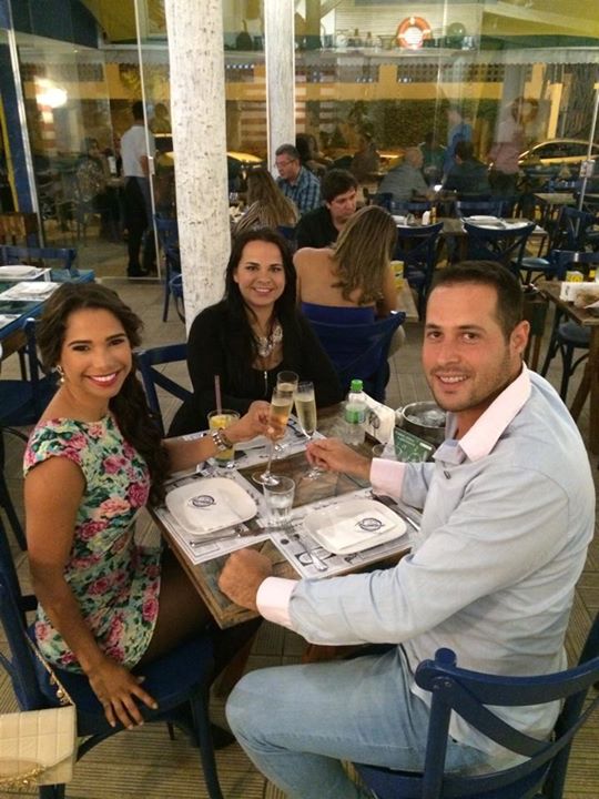 Na foto do Facebook, os dois esbanjam felicidade ao lado de uma prima dela.
