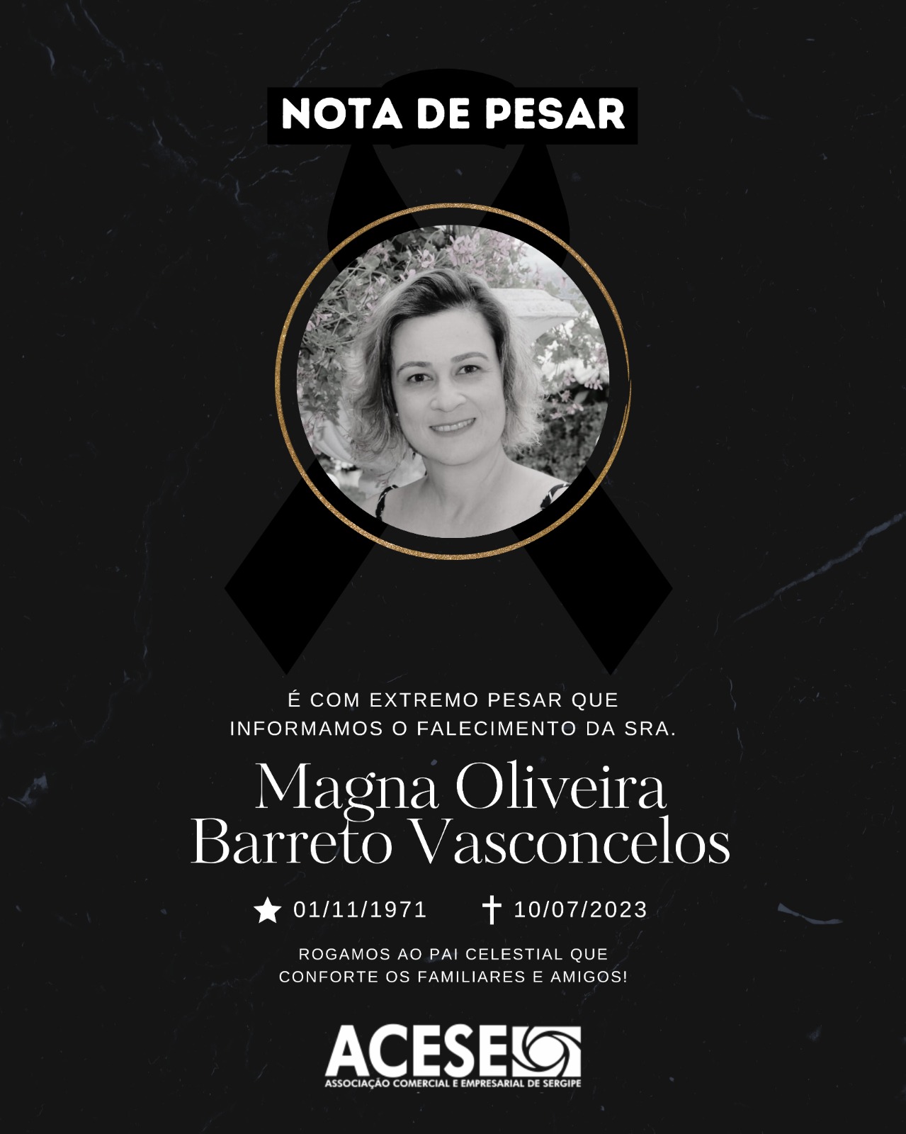 Magna deixa o esposo Maurício Vasconcelos, presidente da Associação Comercial e Empresarial de Sergipe -Acese -, dois filhos, familiares e inúmeros amigos.