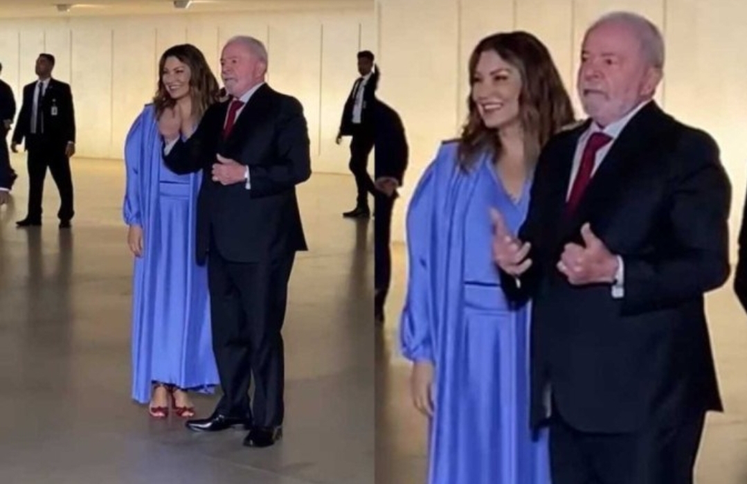 Janja Silva mostra que tem estilo e muito bom gosto! A primeira dama do país continua fiel a estilista do seu vestido de casamento, Helô Rocha. E nada de vestidinho para a cerimônia no Palácio do Planalto, onde o presidente eleito recebeu a faixa de diversos populares e bastante representativos.