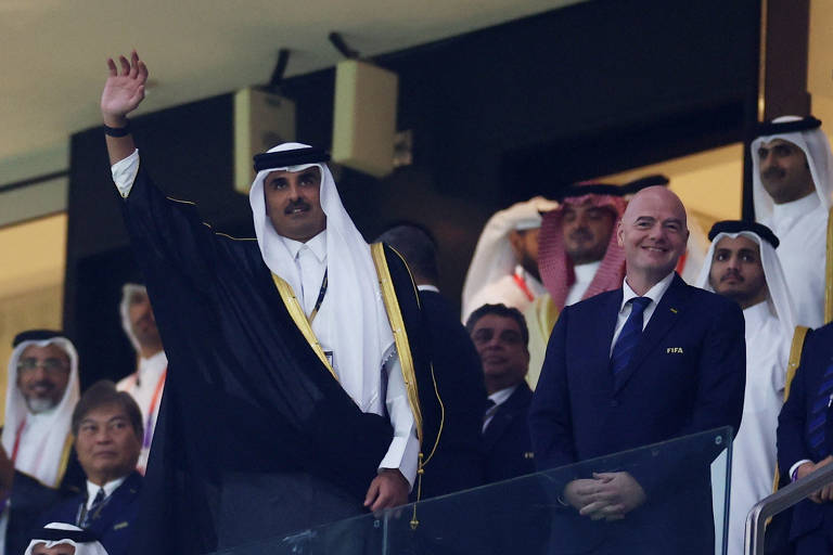O poderoso xeque Tamin bin Hamad Al Thani, na cerimônia de aberura da Copa