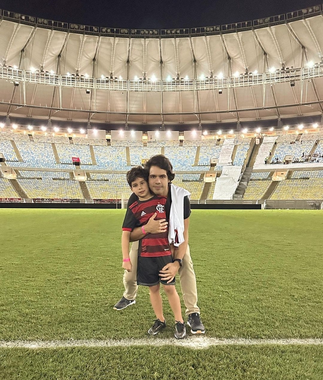 Luciano Barreto Neto com o filho Lucianinho Barreto, que foi mascotinho do Flamengo, como são chamadas as crianças que entram junto com os jogadores ao campo. A tradição no futebol e permitem que torcedores mirins possam ficar perto de seus ídolos e realizar sonhos!