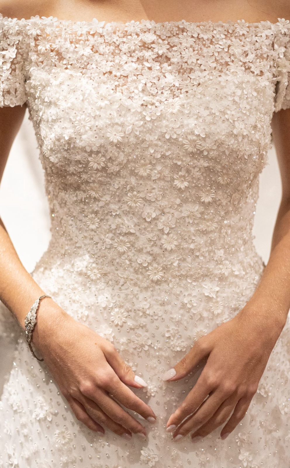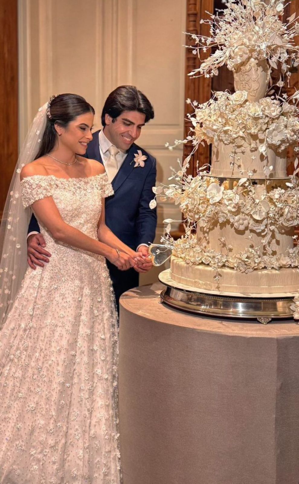 A noiva sabia exatamente o que queria: romance, elegância e uma dose generosa de sofisticação atemporal. E entregou tudo isso - com muita maestria. O vestido escolhido por Yandra para o grande dia é uma verdadeira obra de alta-costura. Na silhueta princesa, ombro a ombro, existia uma profusão de flores aplicadas em 3D, bordadas uma a uma com microcristais e pérolas translúcidas, criando uma textura única e luminosa, destacando seu corpo sequinho, esguio e perfeito.