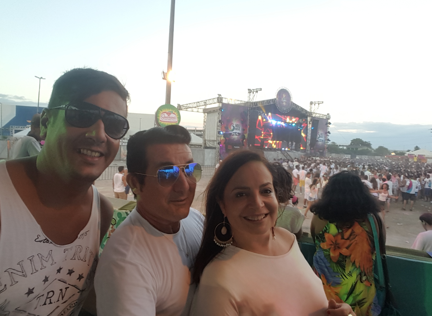 Anselmo Nobre, o inseparável amigo Carlinhos Beauty e eu, Madalena Sá, no Happy Holi, abril de 2016