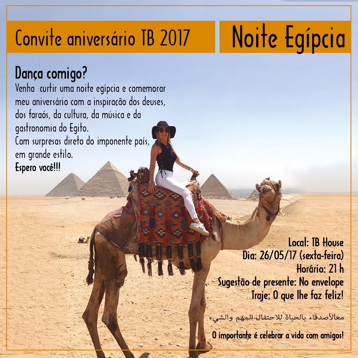 Por esse motivo, encantada com a terra da Cleópatra, sua festa para comemorar os 58 anos, ganha climão das arábias. Será sexta, 29, na TB House. Tô lá!