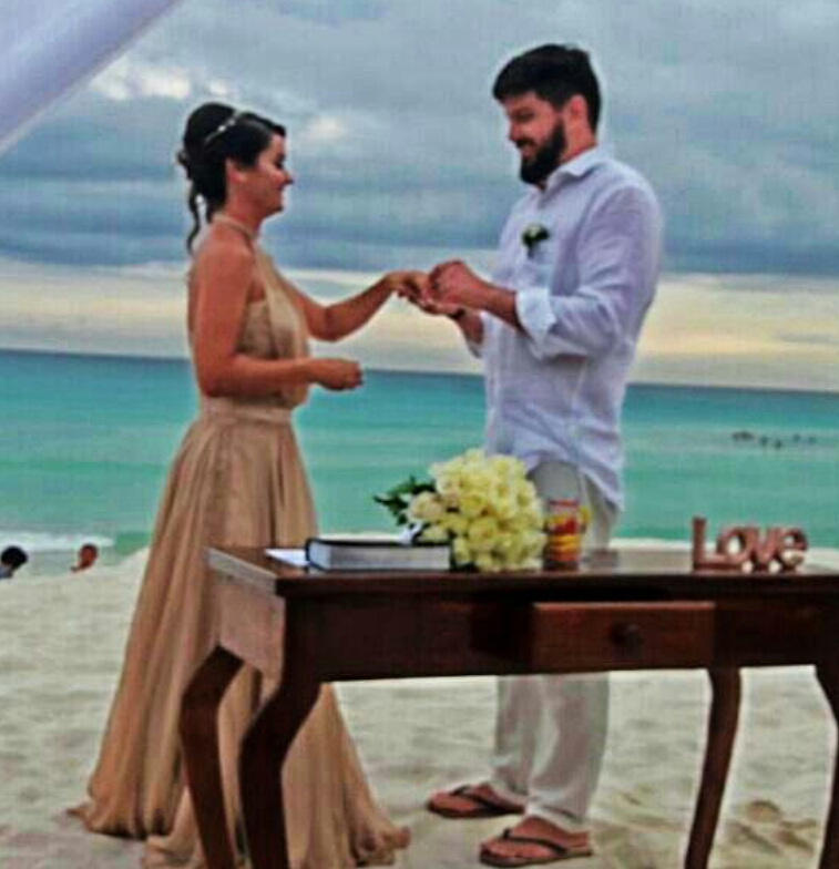 Dânia Matos e Max Amaral trocaram as alianças ontem, dia 15, na paradisíaca Cancún.