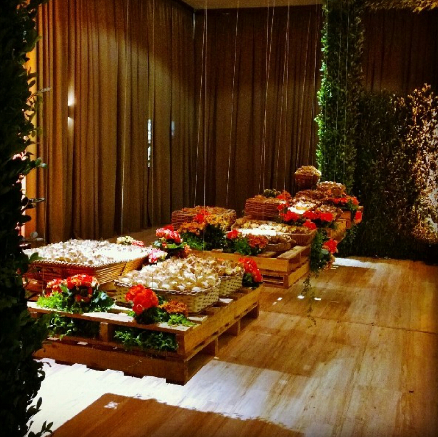 O arquiteto Afrânio Reis foi responsável pelo décor n Villa Antonella. As pallets suspensas surpreenderam os convidados! Sônia Maciel assinou o cerimonial.