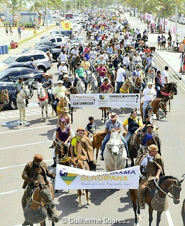 Dividindo opiniões, a galera que apoia a vaquejada se reuniu e chamou atenção de todos na Orla da Atalaia.