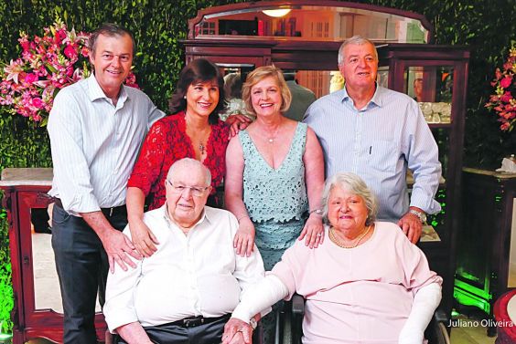 Na foto de Juliano Oliveira, o registro da celebração dos 70 anos do casamento de Maria Cândida Campos Vieira e de Roberto Constâncio Vieira, com os filhos Ruy Vieira, Cãndida, Constância e Robertinho Vieira.