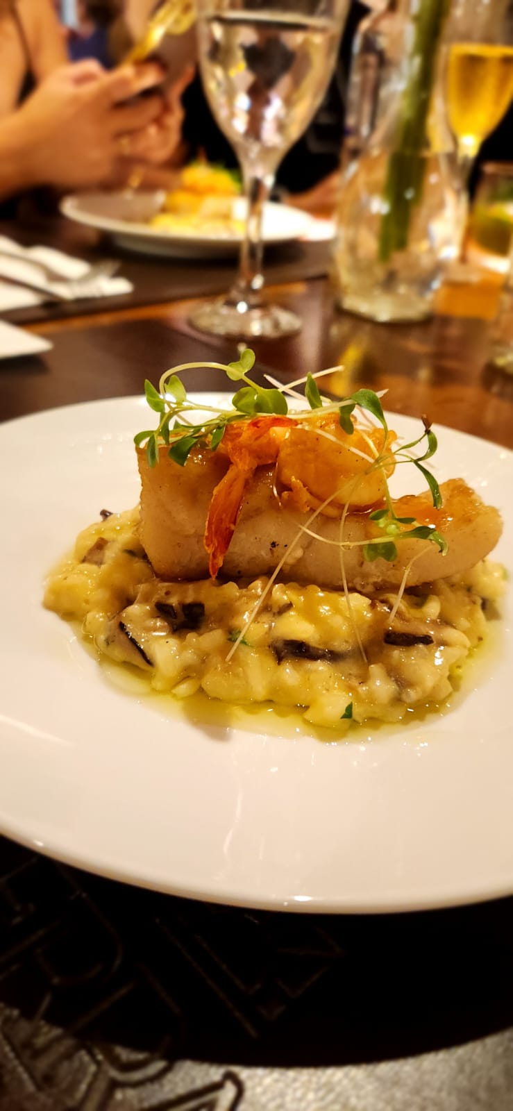 Pescada com molho de laranja e risoto de shitake. Esse ganhou de vez meu coração!